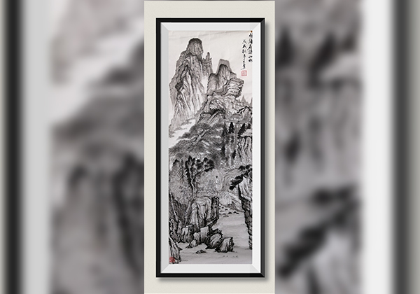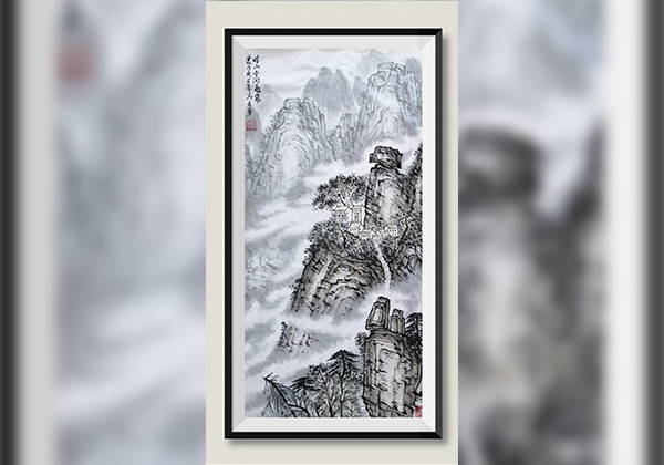 仿张大千黄山石柱峰