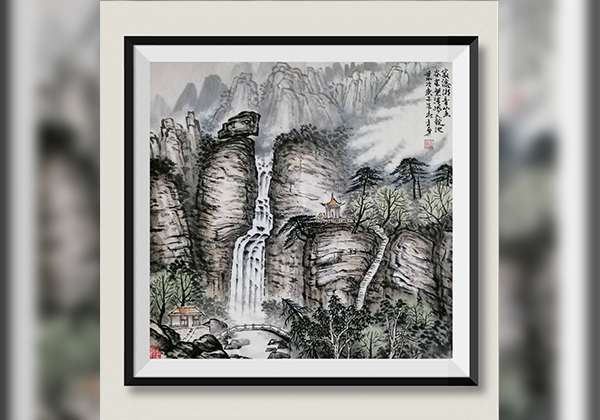 碧嶂千层翠绿 飞瀑十里雷声