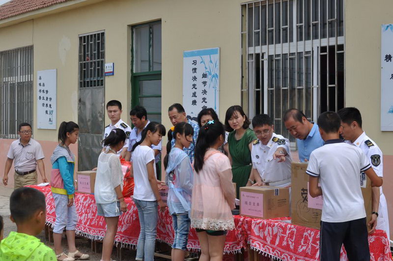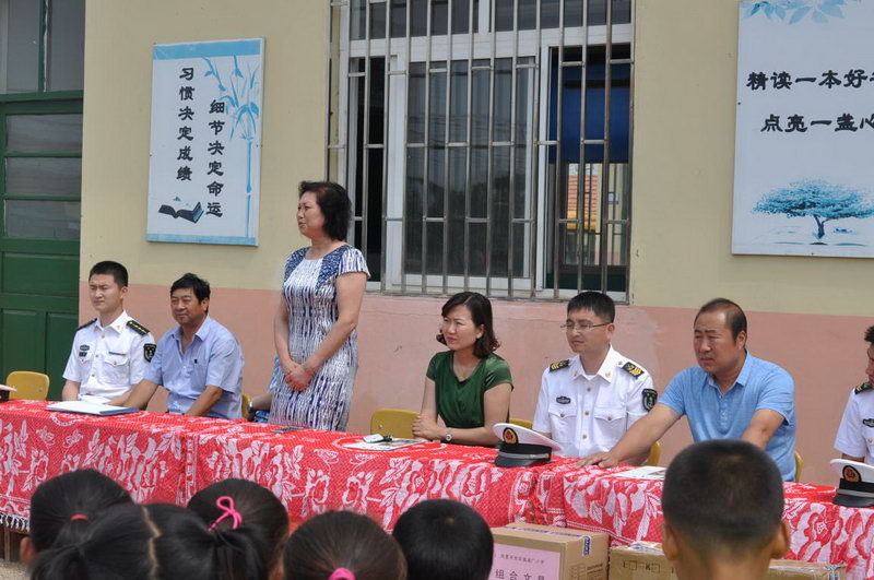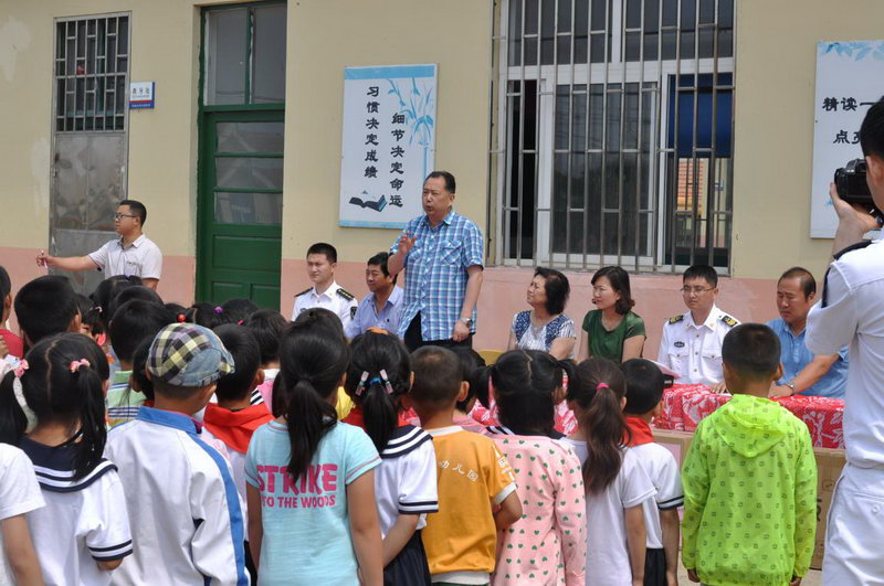 海军学雷锋先进个人林进超为学校赠送了100多本图书及书包、组合文具等文体用品。