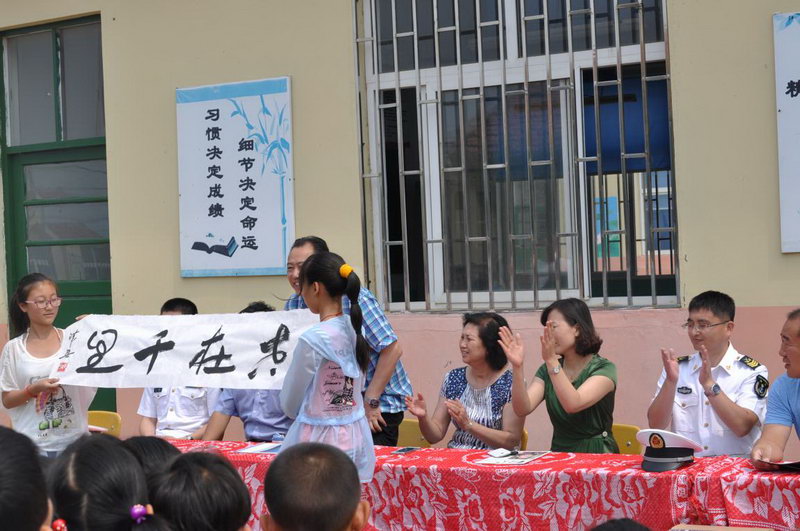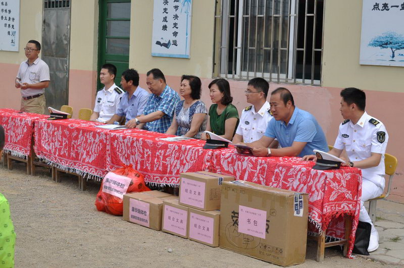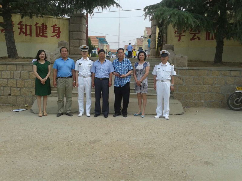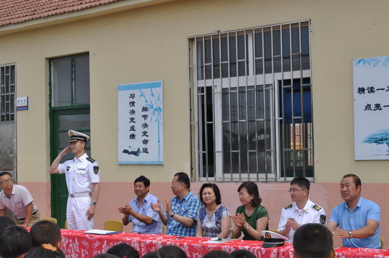 海军91033部队五中队政治指导员王鑫、二级军士长林进超、青岛市书画艺术促进会主席倪汉婴、康华瑞体检健康管理连锁机构马总以及即墨市龙泉镇教委领导出席本次捐赠活动。